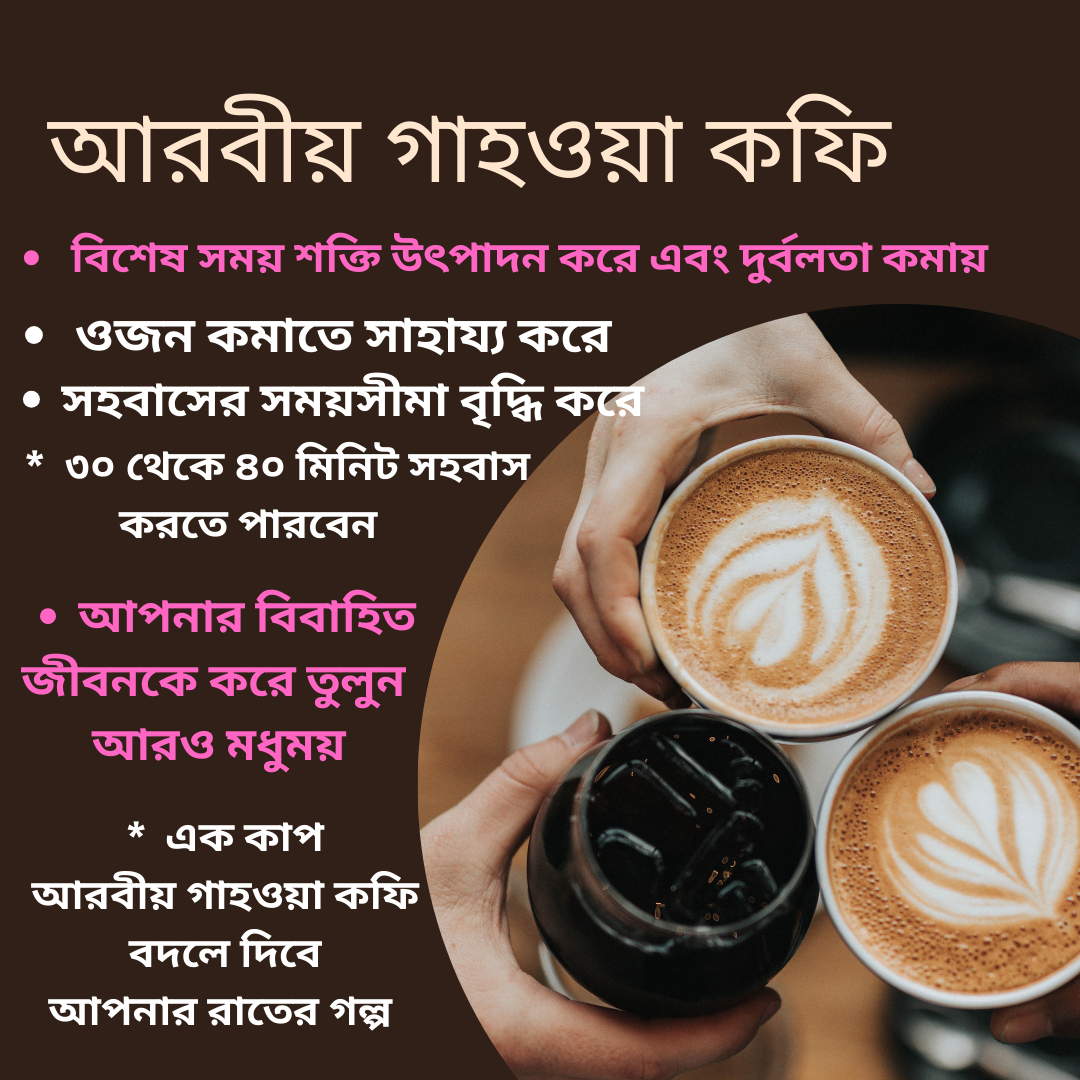 কর্মক্ষমতা ও পৌরুষ ধরে রাখতে পান করুন অ্যারাবিয়ান ‘গাওয়া’ COFFEE অ্যারাবিয়ান এক্সক্লুসিভ ড্রিংক ‘গাওয়া’ সরাসরি turkey থেকে আমদানিকৃত ১০০% খাটি অ্যারাবিয়ান এক্সক্লুসিভ ড্রিংক ‘গাওয়া’ COFFEE.